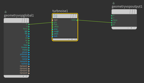 // pnoise()와 같이 복잡하고 많은 인풋을 요구하는 noise()들은 attribute VOP상에서 더욱 편리하게 기존에 세팅된 파라미터들과 함께 작업 할 수 있다.