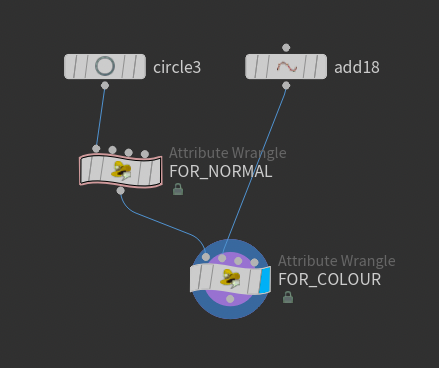 // 윗 wrangle node에 다른 wrangle node를 이어붙여 길이값을 알 수 있다.