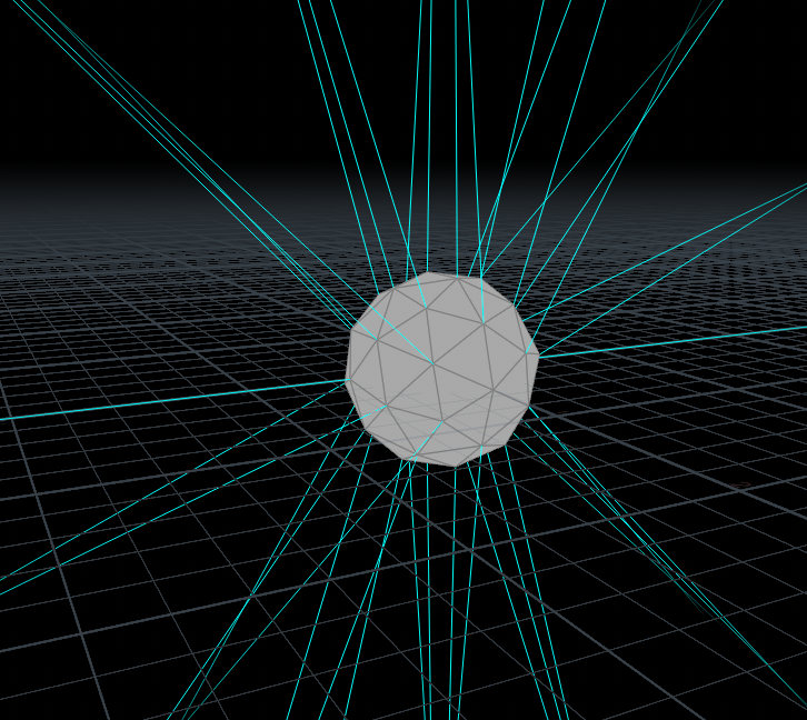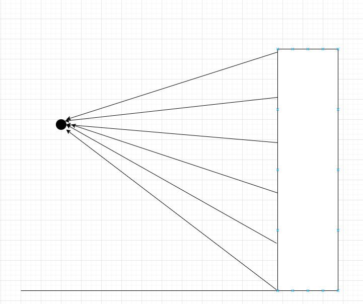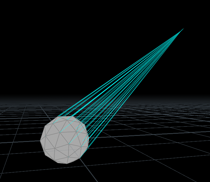 우선적으로 이렇게 모양을 꾸며 왼쪽의 포인트는 광원, 그리고 오른쪽 geometry는 반사되는 물체 이렇게 표현하기로 하였다.