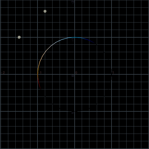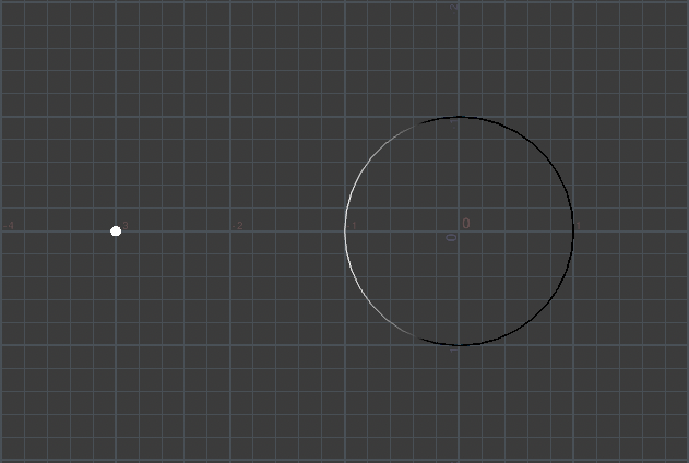 색깔값으로 지정하여 마치 왼쪽 포인트가 오른쪽 circle표면에 빛을 쬐는것처럼 연출하여라. 빛이 닿는 부분일수록
