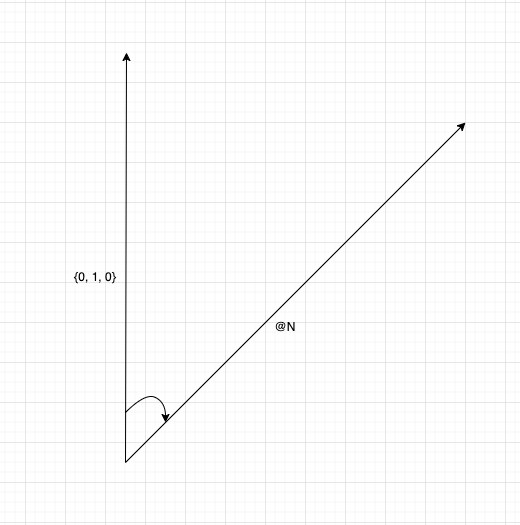 여기서 @N과 vector {0, 1, 0}의 내적각도는 아래 이미지와 같은 원리로 작동된다.