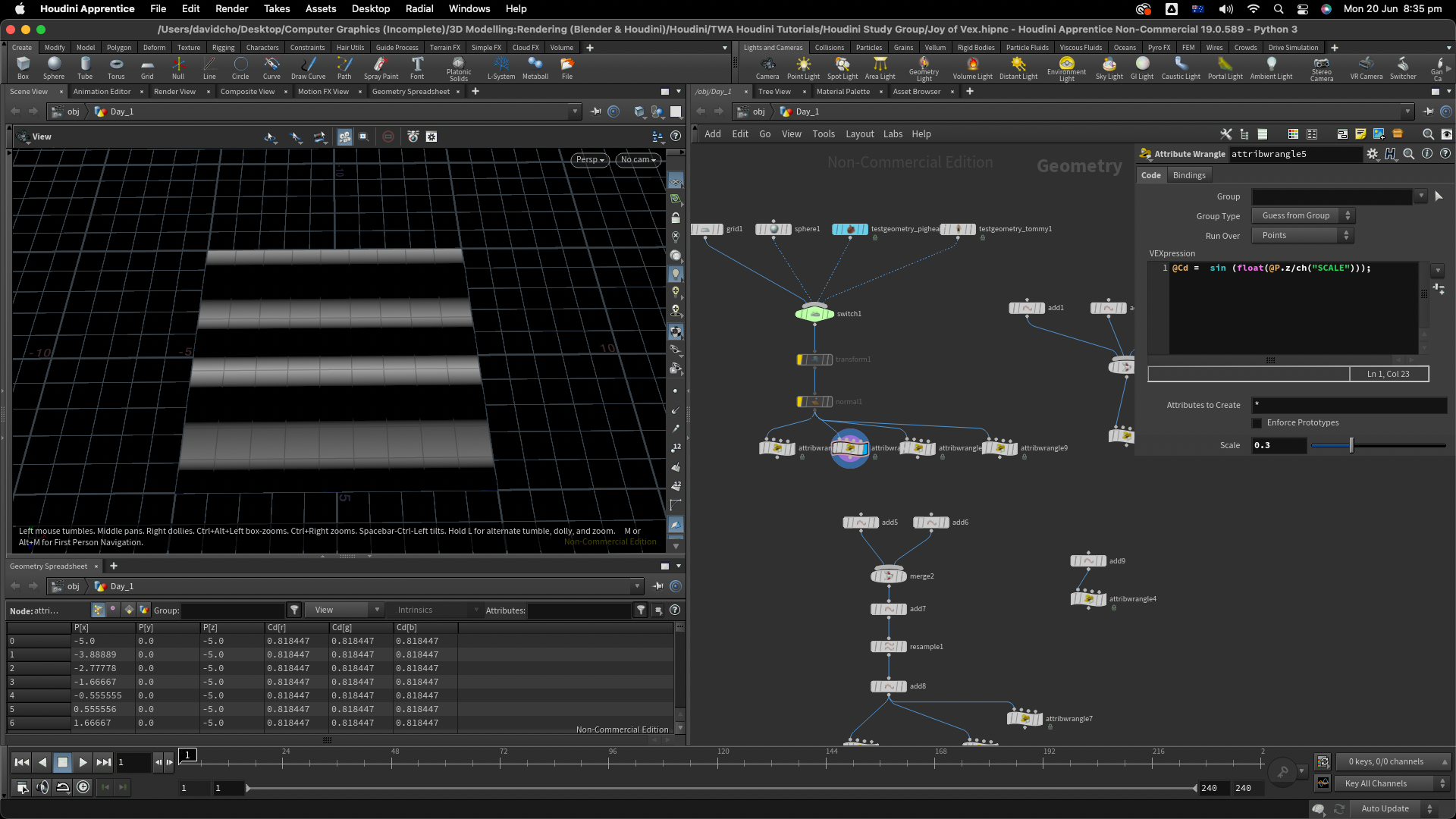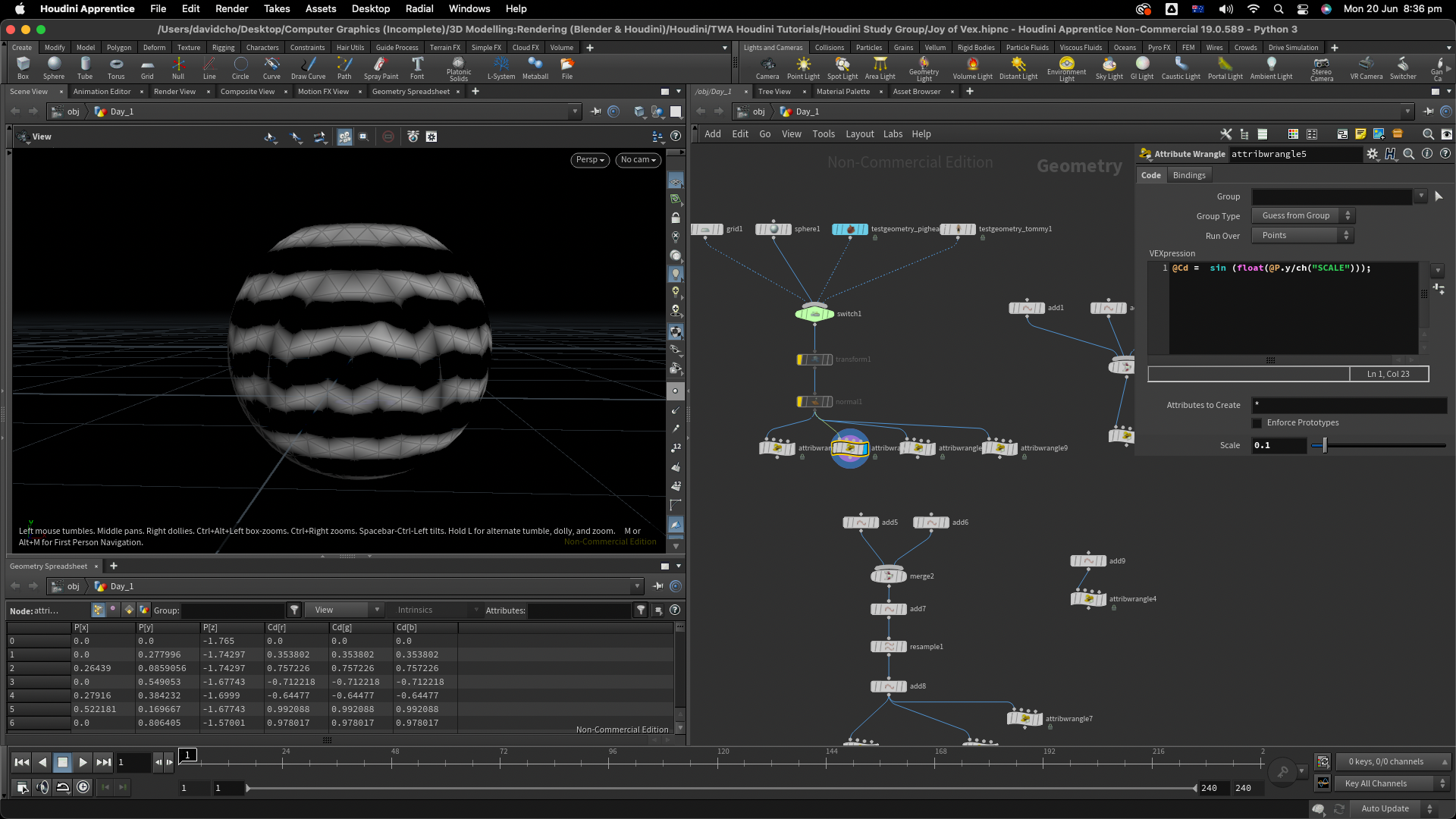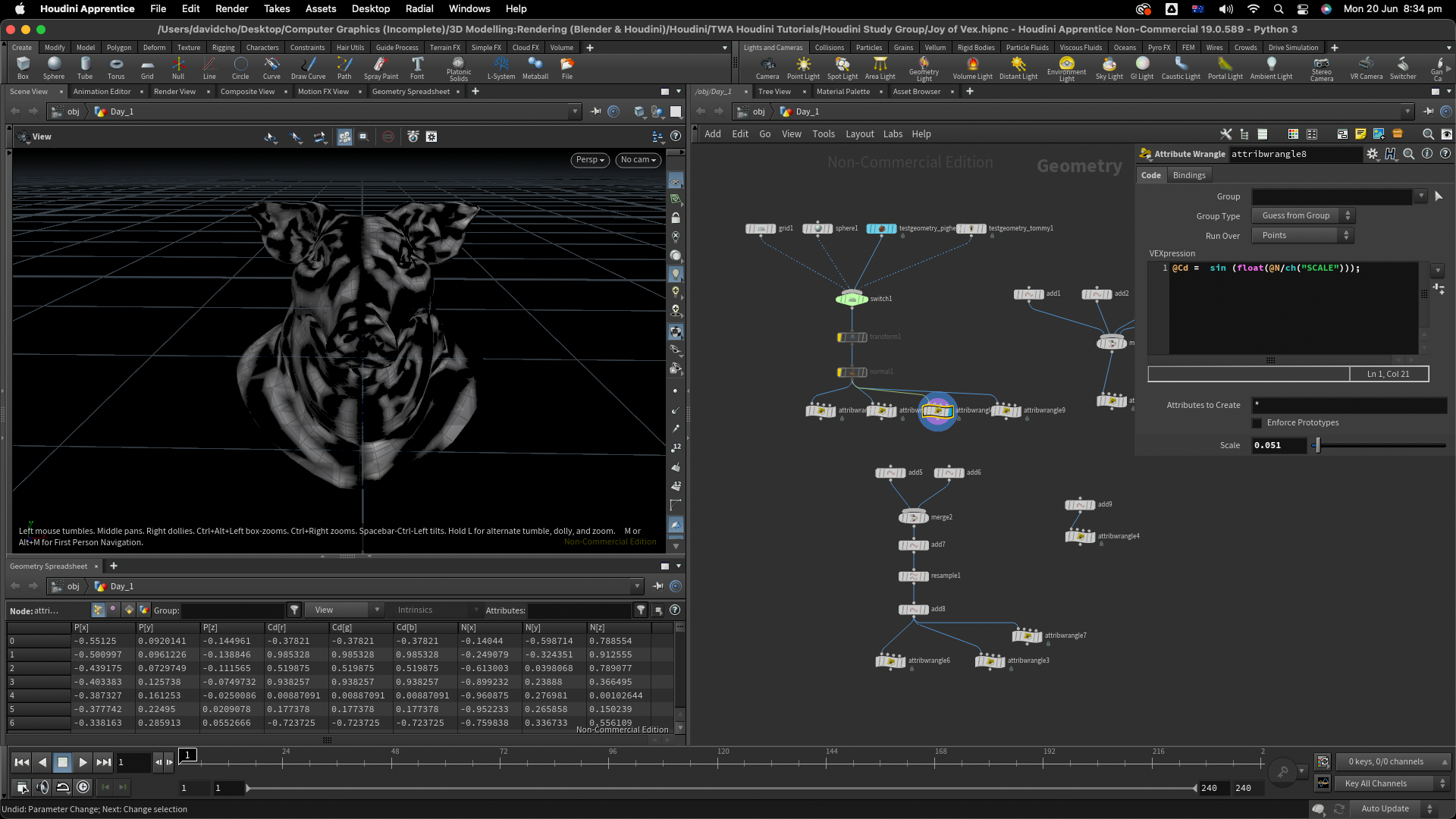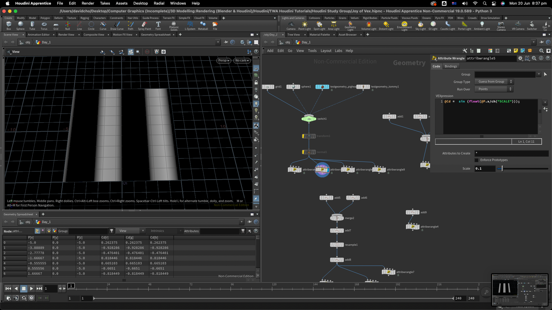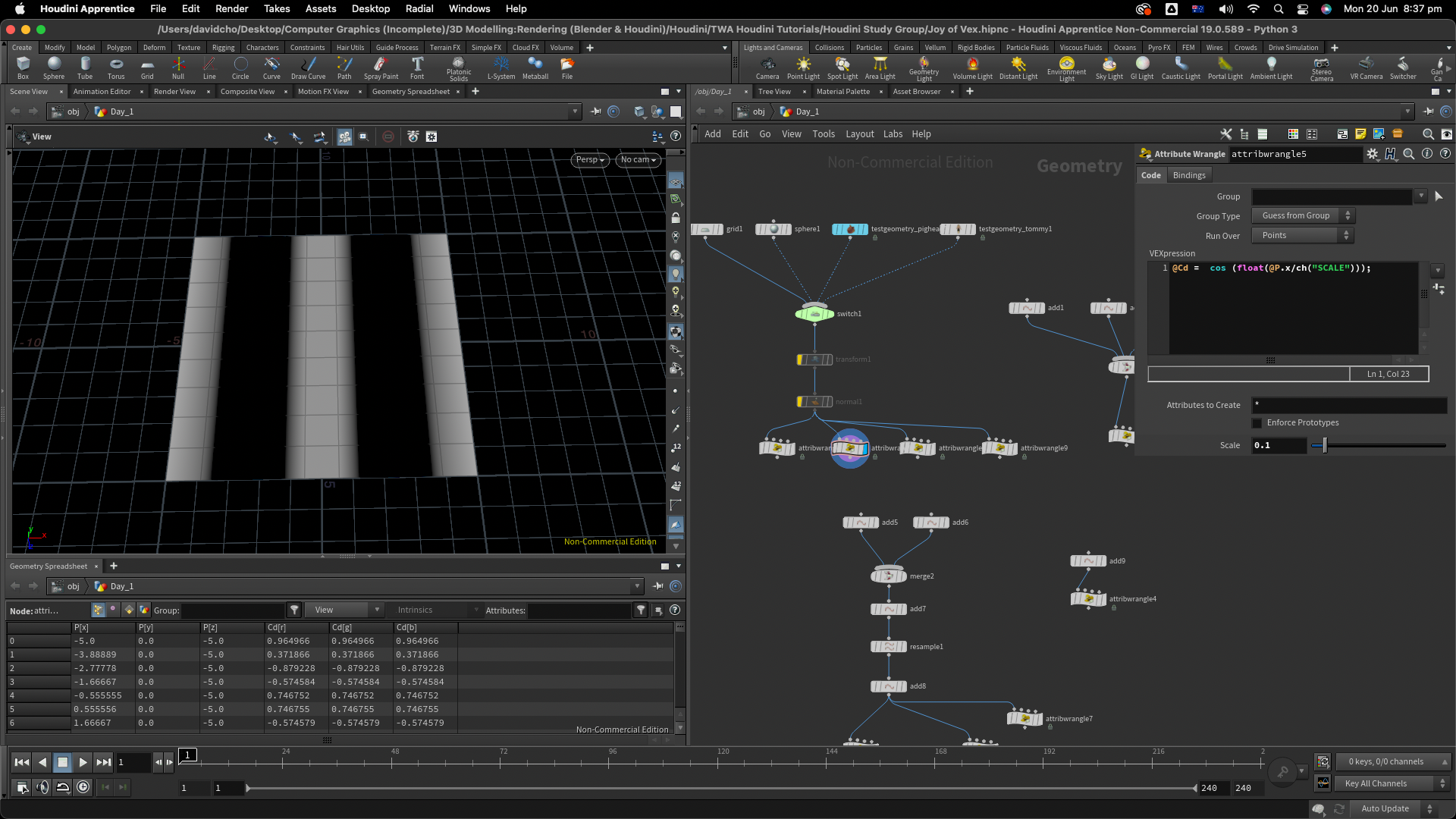 - @P나 @ptnum이 아닌 @N (Normal)이 웨이브를 만드는 sin()이나 cos()같은 function들에게 적용되었을때 어떠한 과정을 통해 특정 쉐입을 형성하는지 궁금하다.