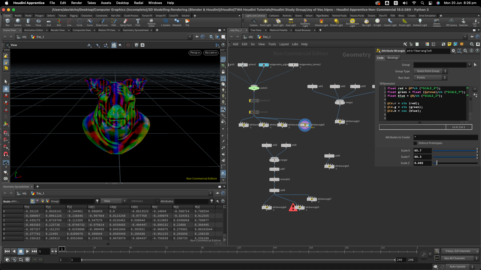 @Cd = @N; //모든 포인트에 대하여 @Cd (Colour)값은 @N (Normal) 값과 같다.
