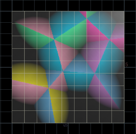 그러므로 두번째로 가까운 포인트들을 중심으로 하여 효과를 만들어주려면 [0]가 아닌 [1]으로 설정하여 코드를 작성해야 한다. 이는 중첩이 한번 일어나고 나타나는 효과값을 나타내줌으로써 더욱 적은 범위의 쪼개짐을 나타내는 것을 알 수 있다.