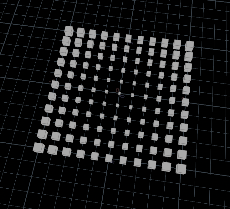 // 즉 원점에서 멀어질수록 카피되는 geometry의 높이값이 커진다고 보면된다