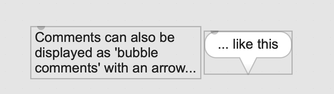 Comment는 종류가 두가지 있는데 일반적으로 쓰여지는 것은 아래 좌측과 같고 또한 inspector -> Basic -> Bubble을 통해 아래 우측과 같이 Bubble형태로 쓰는 것을 가능케 한다.