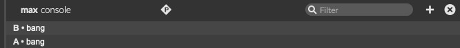 정답은 오른쪽에 있는 object부터 먼저 실행될 것이다. 이는 patcher내부에서 오른쪽에 있는 결과값을 먼저 우선시하는 Max의 특성인데 이를 통해 patcher안에서 object을 어느 위치에 놓아야 할 건지 고려해야 하는 상황에도 놓이게 된다. 이러한 원리를 통해 위 예시를 예를 들면 콘솔창에서 확인을 했을 시에 B가 먼저 print되고 그다음 A가 Print되는 것을 겪게 될 것 이다.