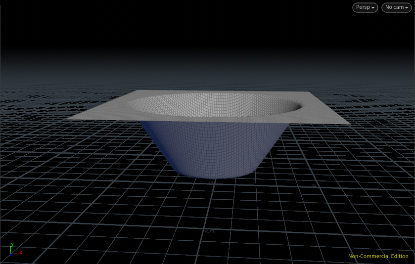 @P.y = clamp (input, 0, 3); // 최솟값이 0 이므로 P.y 기준으로 0 아래로 수치를 기록하던 모든 포인드들은 clamp()에 이해 제한되므로 평평한 grid를 형성시킴. (본래는 뒤집혀진 깔때기 모양을 만들었어야 했음)