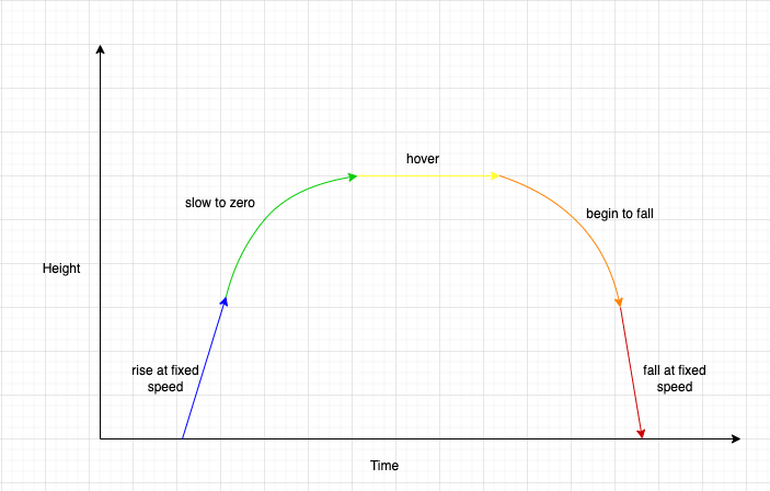 실제로는 사람이 점프를 하면 다음과 같은 물리 그래프로 점프를 하는 것을 알 수 있다. 시간이 지남에 따라 높이가 올라갔다가 내려간다.
