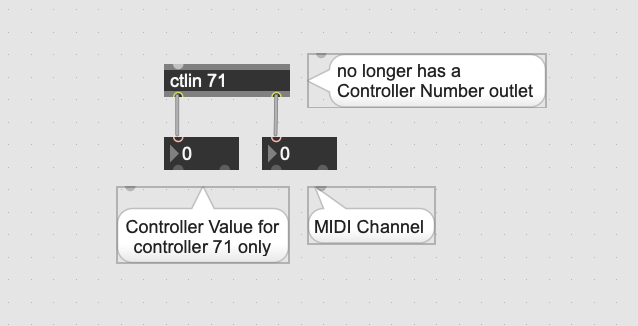 이때 만약 유저가 ctlin에 Controller Value 결과값을 고정으로 설정하고 나머지들만 output으로 나오게끔 만들고 싶을 때 다음과 같이 특정 Controller Value값을 argument로 설정한 다음 해당되는 Controller Value에만 다음과 같은 Controller Number과 MIDI Channel을 가지게끔 만들어 줄 수 있다.