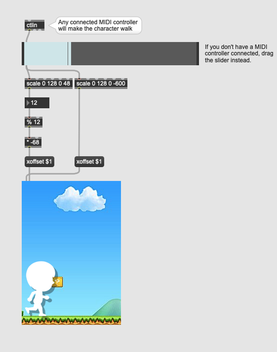 - Use MIDI controllers or UI objects to interact with your patch. (Patch와 인터렉션을 진행할 수 있게 MIDI 컨트롤러와 UI object들을 사용해보기.)