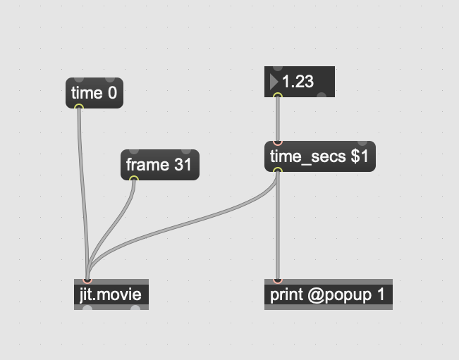 | time_secs | jit.movie안 미디어 파일의 재생할 특정 초당 타임 좌표를 설정해주는 역할을 한다. |