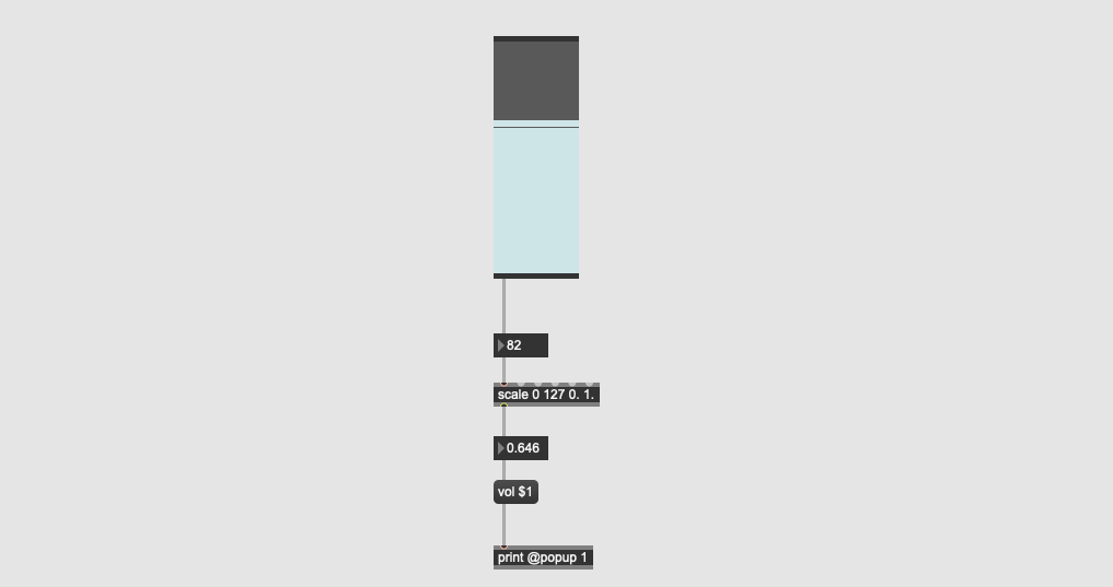 앞서 보았겠지만 jit.movie를 향한 message들은 특정 range (범위)를 가지게 된다. 이 때 UI Object을 사용하여 message값을 파라미터로써 조절하고 싶을때 우리가 기본적인 range가 아닌 우리가 필요하다고 생각되는 range로 조절하여 바꾸어 줄 수있다. 몇몇의 objects들은 그들의 인스펙터를 통해 range를 조절해줄 수 있는데 더욱 간편한 방법을 사용하려면 scale object을 사용할 수 있다.