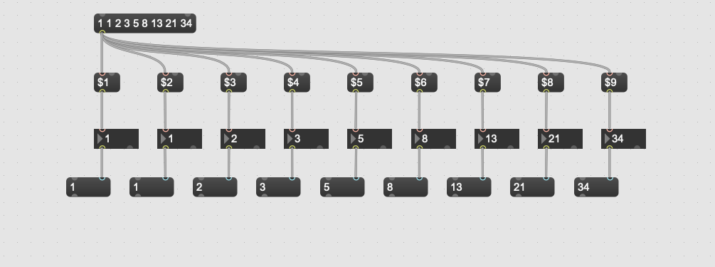 아마 jit.movie를 사용하는 순간이 올때 jit.movie안에 특정 값을 조절하게 만들어 유동적으로 원하는 방향의 영상 파일 재생을 추구하는 순간이 올 것이다. 이때 앞서 언급했듯이 message를 연결하여 특정 프레임이나 타임 아니면 속도 등을 조절할 수 있는데 이때 더욱 편하게 UI Object을 사용하여 Message안에 들어가는 값을 조절하고 싶을때는 $1을 대신 써넣어 가능하게 만들어 줄 수 있다. $1는 들어오는 첫번째 값을 기존의 값에서 대채한다는 것을 의미하는데 이는 마치 후디니 Vex에서의 ch() function이라고 이해하면 쉽다. 일종의 파라미터를 만들어 주어 값을 조절해 줄 수 있다는 것이다.
