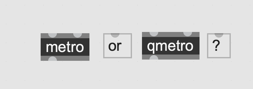이때 qmetro가 아닌 일반적인 metro도 있는데 이 두 object들의 차이점은 qmetro는 CPU의 성능에 따라 object들의 작동이 빨라질 경우 jit.movie의 bangs 즉 현재 재생되는 프레임을 결과값으로 내보내는 속성의 우선순위를 낮추게 된다. 보다 안정적이고 변수 없이 CPU에 무리가 가지 않는 비디오를 재생하기 위해서는 metro를 사용하여 일정한 속도로 영상이 재생되게끔 세팅해야 하는데 만약 CPU에 무리가 가는 영상을 재생할 경우 qmetro는 metro와 다르게 일정한 속도로 유지하려고 하여 처리 대기열이 밀리려고 할때 시각적 결과를 내보내는 과정을 다른 과정들이 먼저 처리되고 실행되게끔 만들어 준다. 그럼으로 인해 CPU 의 부하를 줄이기 위해서는 주로 다양한 jit.movie나 각기 다른 시각적 material들을 Max에서 디스플레이 할때에는 qmetro를 사용하는 습관이 좋다.