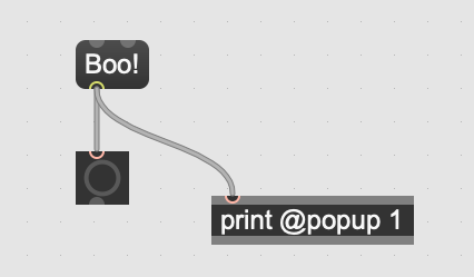 Max상에서 오디오로 작업을 할 때 기본적인 Max Object들과 다르게 작동 할 수 있다. Max object들이 서로 어떠한 방식으로 작동되고 있을때 그들이 서로 커뮤니케이션을 할 동안 Max의 오디오 신호는 조금 다르게 작동하게 된다. 마치 다음과 같이 Boo와 같은 message box를 클릭하기 전에는 정보는 절대로 다른 object으로써 자동으로 보내지지 않게 된다. 하지만 이 때 Max에서 ~ (tilde)와 같은 물결표시가 있는 object들은 MSP Object으로써 칭하는데 이는 각기 다른 종류의 정보를 간단한 Max message에 보내게 된다. 이들은 신호와 함께 커뮤니케이션을 하며 정보는 유저의 인터렉션을 떠나 지속적으로 보내게 되는 역할을 하게 된다.