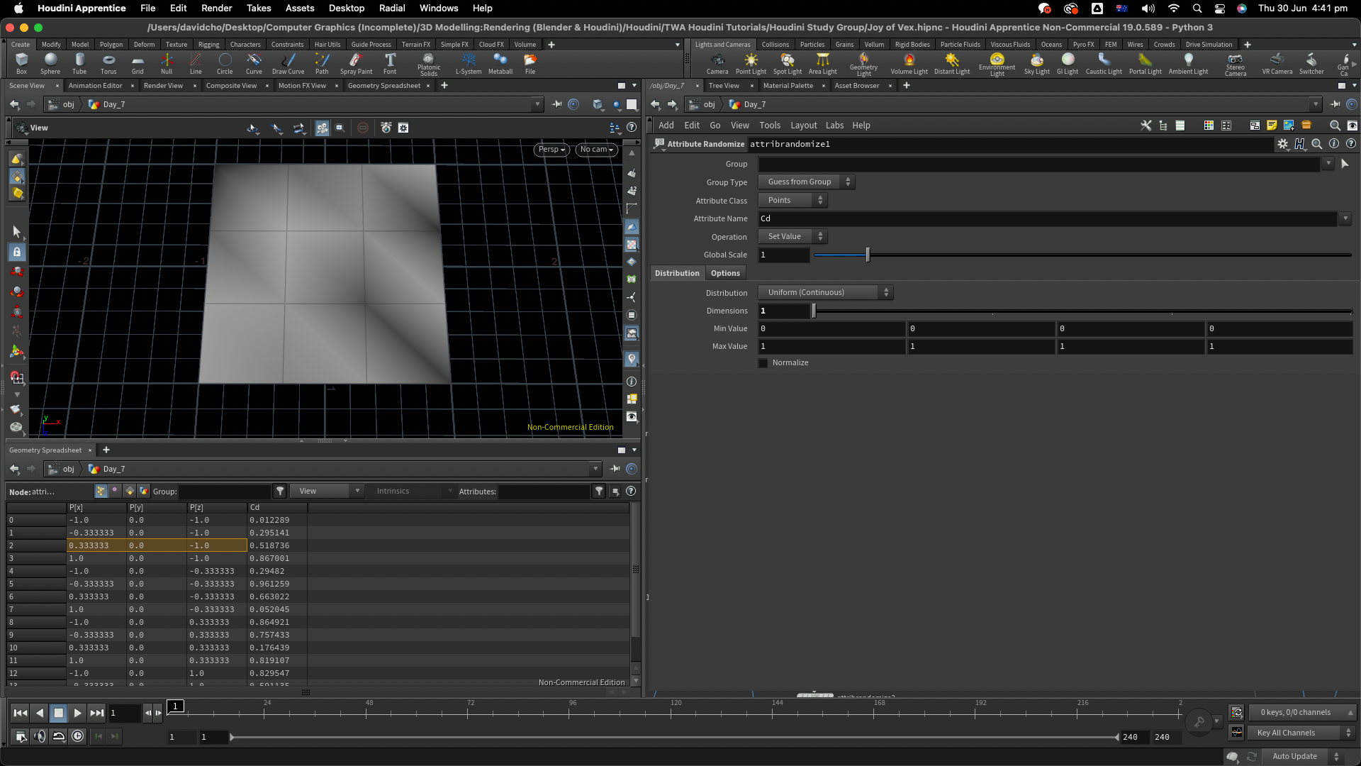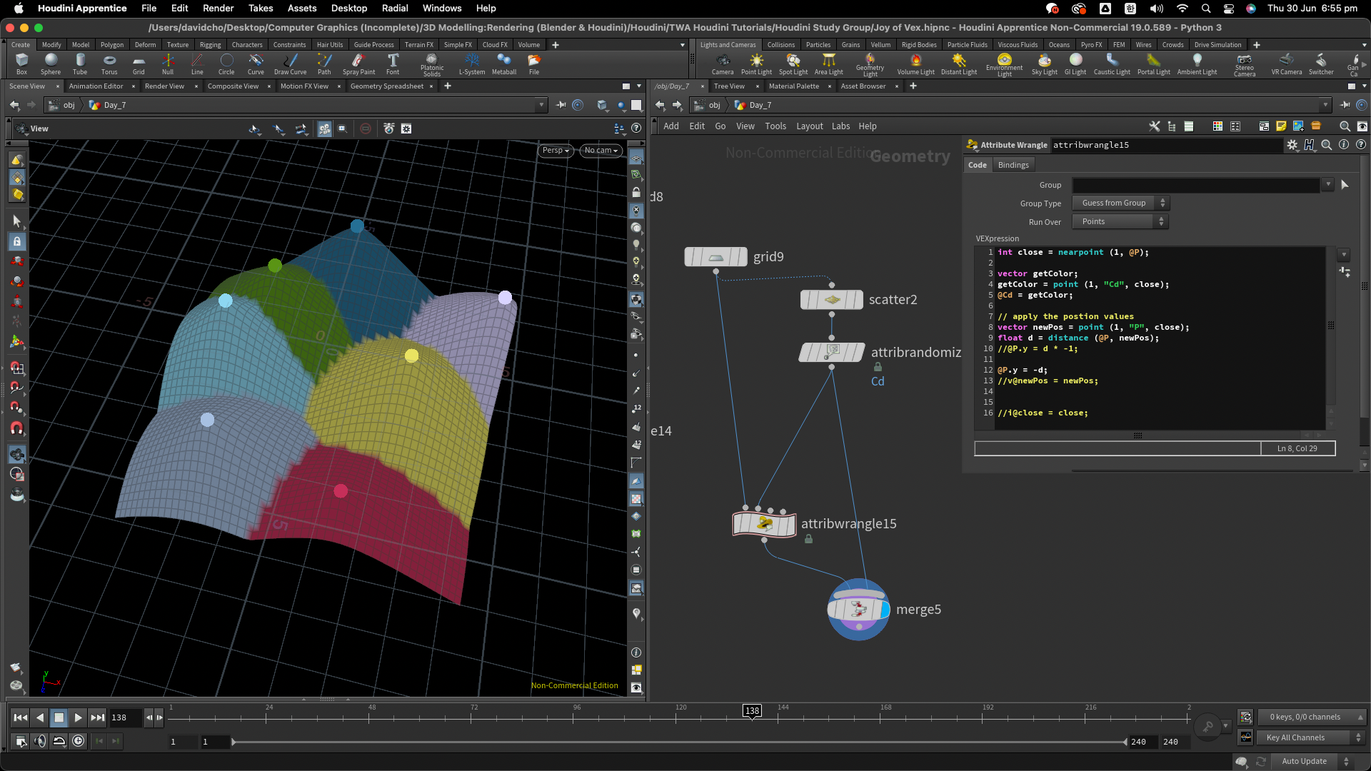 와... 지난번에 두 번 분명 들었는데.. 그때는 이해를 완전히 못하고 그냥 넘겨짚어갔는지 이번에 완전 깊게 공부하고 나니 새로운 내용을 배운것처럼 머리가 폭발하기 시작하였다... 자신만만했던 나를 반성한다. 7일차오니 내가 똑똑한 편이 아니었구나를 새삼 실감하게된다. 그러고 나니 오히려 더욱 모티베이션이 생겨서 더 열심히 해야겠다는 생각이 든다. 아마 다이어리를 쓰면서 제일 시간도 오래걸렸던것 같다. 보통 다이어리를 작성할때는 시간을 최대한 많이 쓰지 말자라는 생각으로 임하게 되는데 이번 강의에 관한것은 코드를 하나하나 곱씹고 또 반복하고 또 곱씹어야 완전히 내것이 되겠다는 것을 지난 두 번보고 잊어버렸다는 사실때문에 더욱 실천하고 시간도 오래 걸렸던 것 같다. 이번 강의는 어렵기도 했지만 무엇보다도 배우는 양이 다른 강의 때에 비해 현저하게 어마무시하게 많았고 attribute wrangle의 인풋을 여러개 사용하니까 햇갈리는 부분이 컸다. 또한 사용을 안해봤던 노드들의 양이 현저히 많아져 머리가 터지는데 일조한것같다. 또한 중간에 rubbertoy와 platonic을 이용한 부분은 지난 최초입문강의 의자만들기 때처럼 노드의 양이 많아져 가뜩이나 vex로 작업하는데 진짜 와 이거 나중에 어케하냐라는 생각이 들기도 했다. 아마 지금 내가배우는것은 vex의 완전 기초중의 기초이지만 벌써 어렵다는 것을 느끼고보니 새삼 후디니가 만만치 않다는것을 완전하게 깨닫는 day였기도 했던 것 같다. 내일 중간고사 그리고 주말에 완성할 과제그리고 day 8공부 등 이번주 주말은 정말 바쁘게 보내야 할것 같다. 아마 이렇게 바쁘게라도 해야 후디니 발끝이라도 잡을것같다. 그렇지만 항상 모든것에는 기초가 중요하듯이 나도 기초하나는 완전히 마스터를 해야 나중에 Destruction이든 Particle이든 뭐든 하고싶은것을 해야한다는 생각이 든다. Joy of Vex가 그 기초를 다질 수 있다는 초석이 된다는 사실을 상기시키고 마음을 단단히 먹어야 겠다는 생각이 든다.